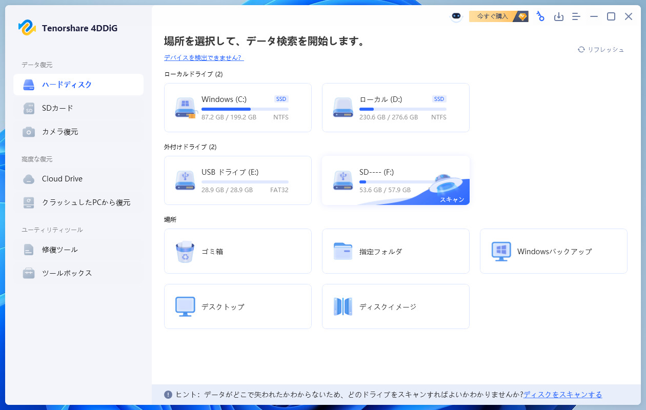 なかでも、データ復元に注目したのが、「4DDiG Windows Data Recovery」ソフトです。