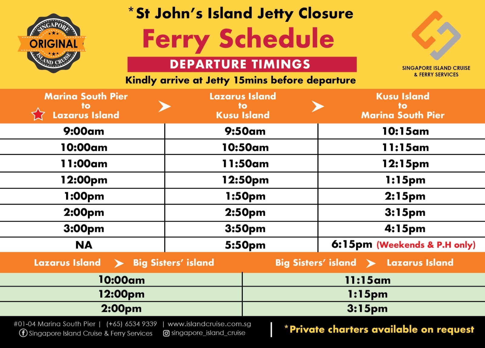 • 10:00-10:30 マリーナサウスピア → セントジョンズ島 & ラザロ島